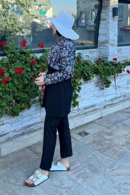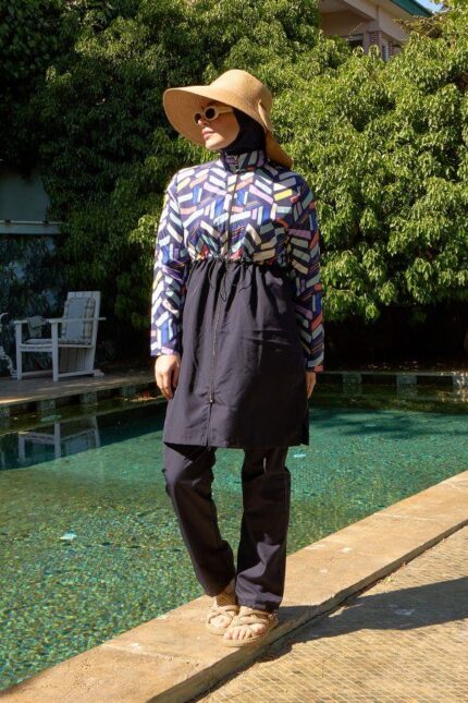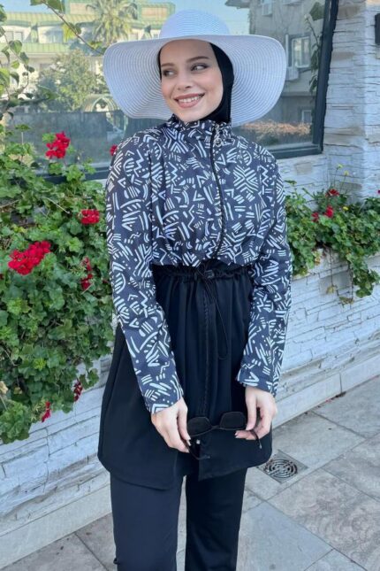 Toptan Tesettür Mayo Fermuarlı Siyah Afrikan Desen