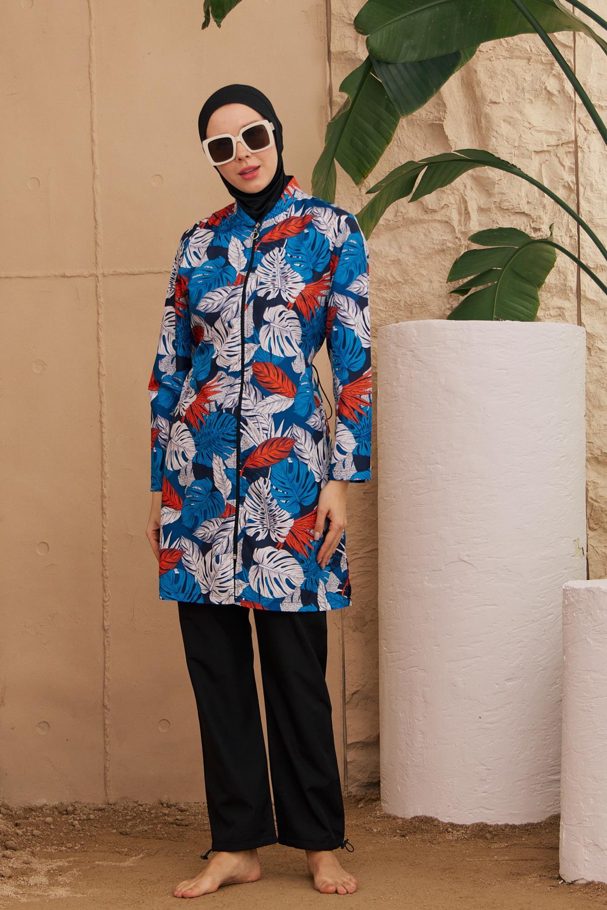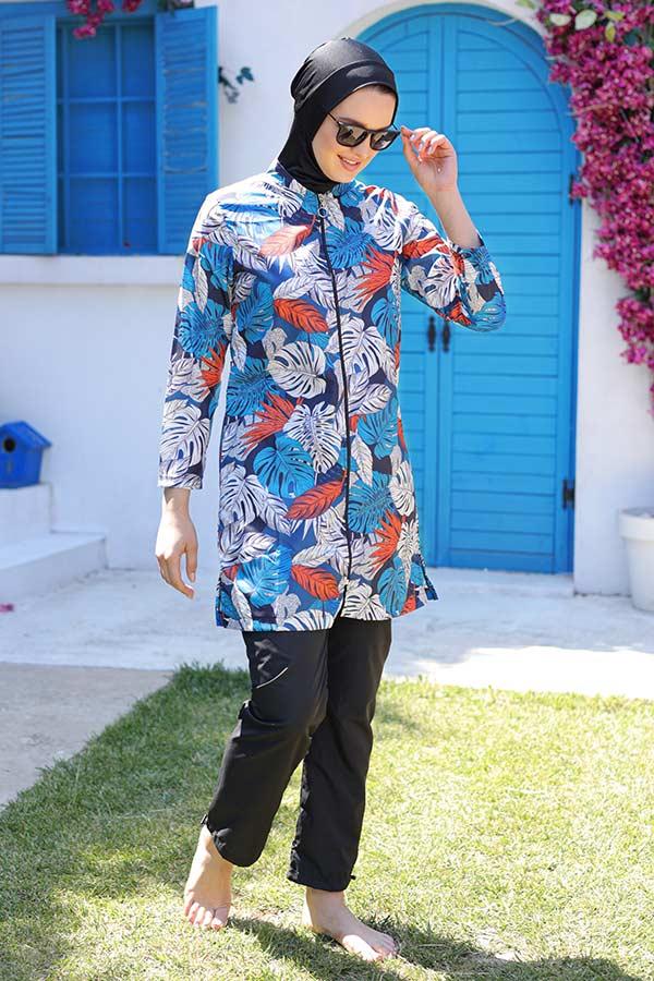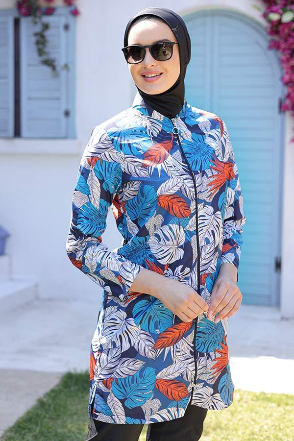 Hmm Swimwear Yaz Desenli Dokuma Tesettür Toptan Mayo