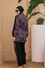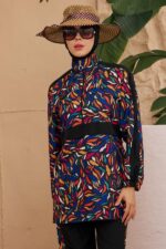 Tesettür mayonun takımı pantolon, tunik, eşarp bone ve büstiyerden oluşmaktadır.