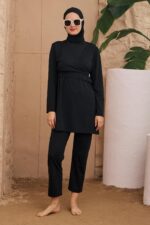 Takım içeriğinde tunik, pantolon, eşarp ve büstiyerden vardır.