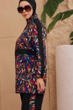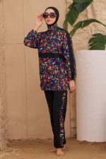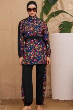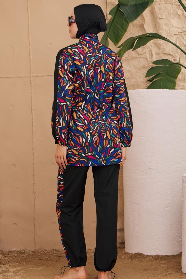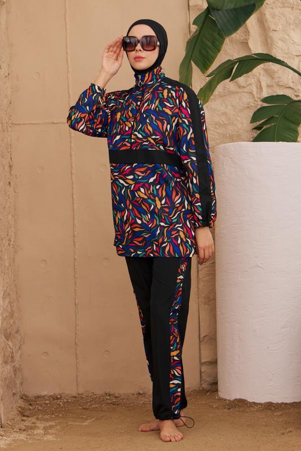 Tesettür mayonun takımı pantolon, tunik, eşarp bone ve büstiyerden oluşmaktadır.