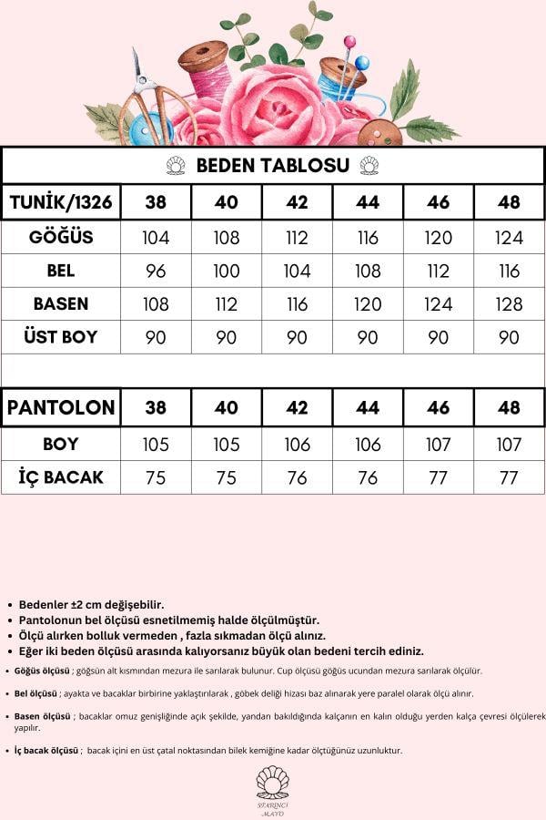 Tunik ve pantolon paraşüt kumaştan üretilmiştir.